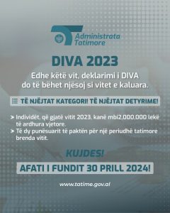 Edhe këtë vit, deklarimi i DIVA do të bëhet njësoj si vitet e kaluara